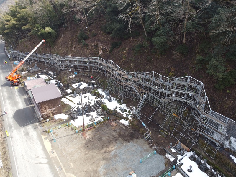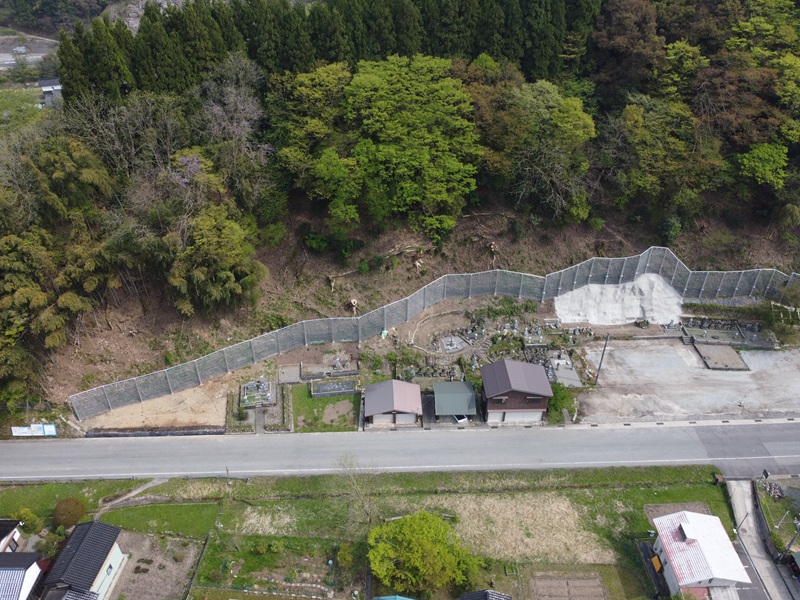 崩壊土砂防護柵工 109m、モルタル吹付工 150m2